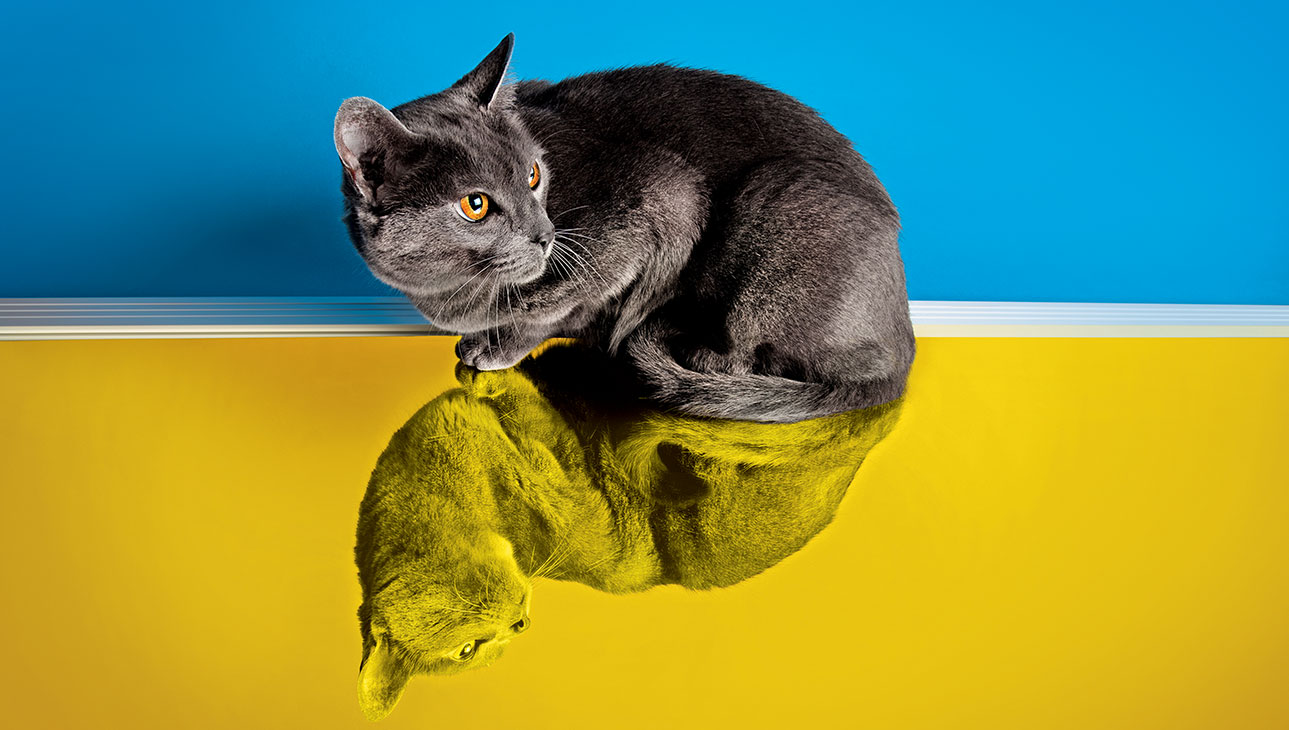 Para eles, o dono é líder do bando, todo dia é de caça e cada sala é uma selva. Enxergue o mundo com olhos felinos: em azul e amarelo. E sempre alerta