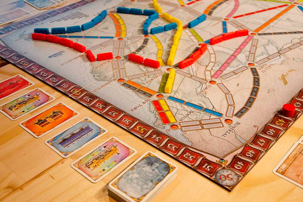 Um clássico tem motivos para ser um clássico. Ticket to Ride tem partidas mais longas, de 30 a 60 minutos, e pode ser jogado por 2 a 5 pessoas. Elas disputam quem consegue fazer a maior rota ferroviária pela América do Norte.