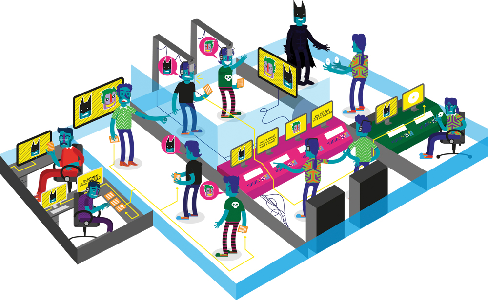 2. Depois de traduzido e revisado, o programa é dividido em anéis – roteiros em trechos de 20 segundos. A partir dessa divisão, é possível separar a voz dos personagens e saber qual será a participação de cada dublador. O dublador só fica sabendo do texto no dia da gravação. Cada profissional grava, em média, trinta anéis por hora