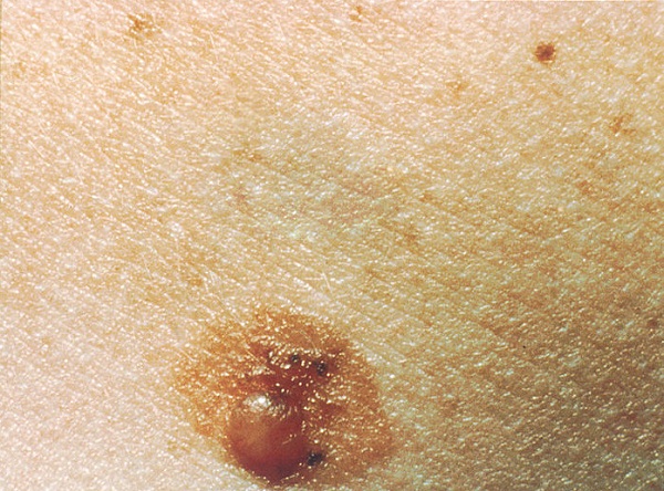 É uma saliência com recheio. Na pele, o tipo mais comum é o sebáceo, recheado de material seboso amarelado ou avermelhado. Costuma ser indolor e aparece com mais frequência nas costas, no couro cabeludo, na orelha e no rosto.