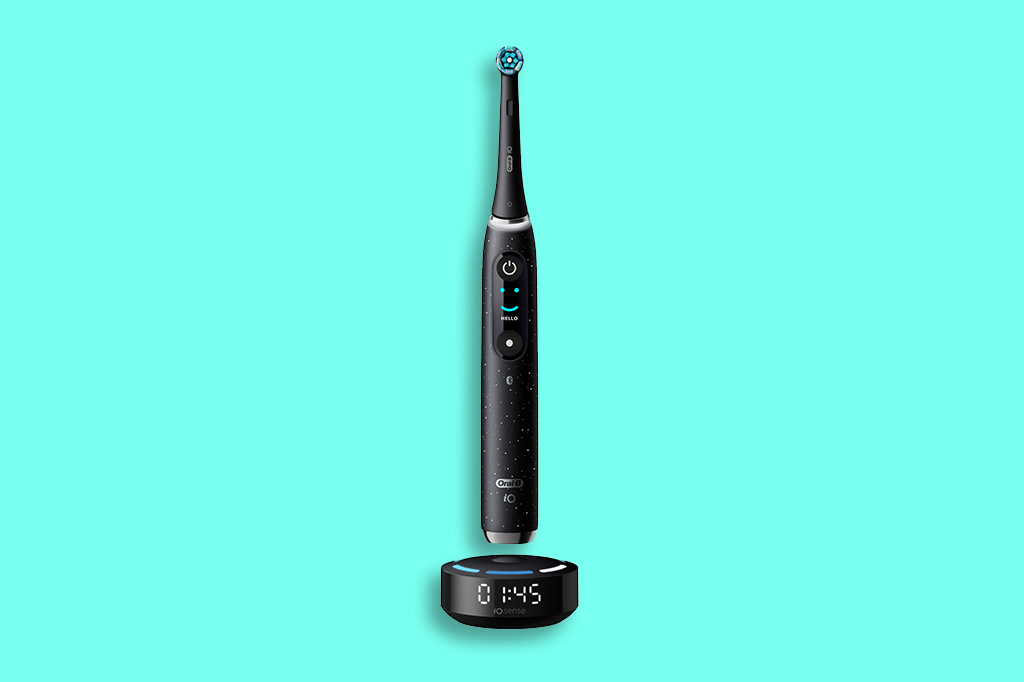 A escova elétrica Oral-B iO Series 10 (US$ 150) tem sensores que avisam se você estiver escovando com força demais, e também cronometra quanto tempo fica em cada região da boca – o ideal é limpar cada uma durante 20 segundos, totalizando 2 minutos.